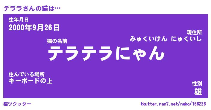 | 2回繰り返すあだ名 | 『テラテラ』『テテララ』『ぐいぐい』 |