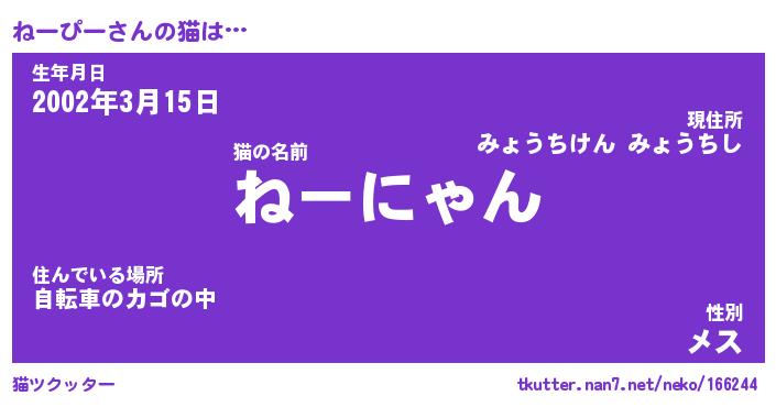 | 生年月日? …「くろねこ」 | 8月01日 10:16 |