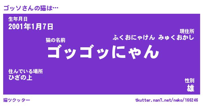 | ポケモン風あだ名 | 『ゴッチュウ』『ゴッソダネ』 |