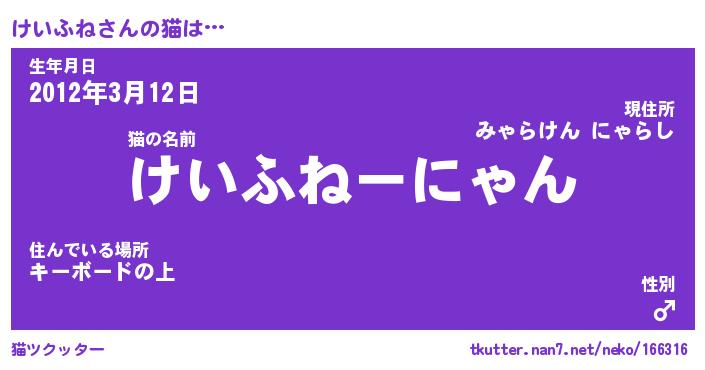 | 意味不明あだ名 | 『ペロリンけいふね』『永久保存けいふね』 |