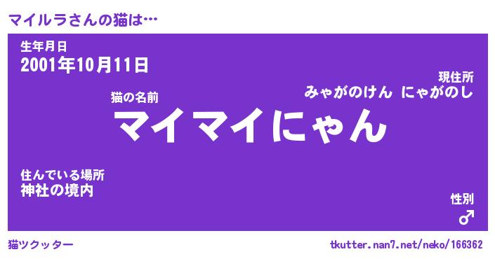 | ポケモン風あだ名 | 『マイチュウ』『マイルダネ』 |