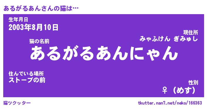 | ポケモン風あだ名 | 『アルチュウ』『アルガダネ』 |