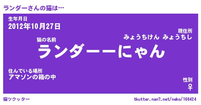| 意味不明あだ名 | 『ペロリンランダー』『永久保存ランダー』 |