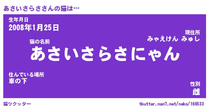 | ヒーロー風カッコイイあだ名 | 『スーパーアサイサラサ』『天弓騎士アサ』 |