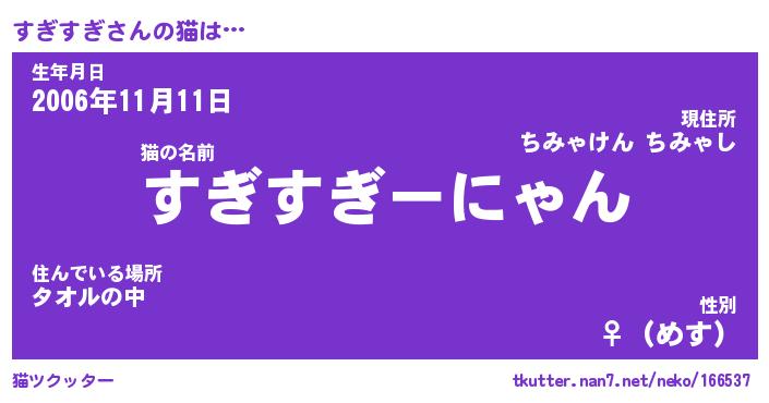 | 2回繰り返すあだ名 | 『すぎすぎ』『すすぎぎ』『なあなあ』 |