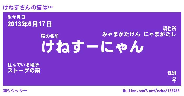 | ファンタジー風あだ名 | 『ケネフェル』『エターナルケネスー』 |