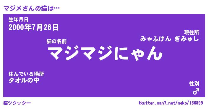 | ポケモン風あだ名 | 『マジチュウ』『マジメダネ』 |