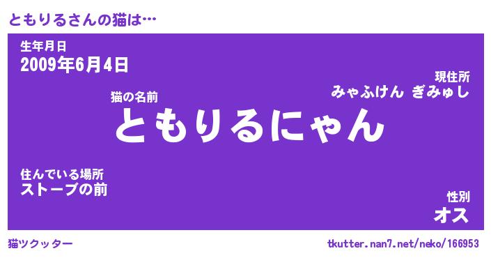 | 意味不明あだ名 | 『ペロリンともりる』『永久保存ともりる』 |