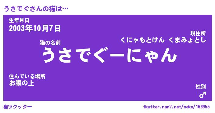 | ポケモン風あだ名 | 『ウサチュウ』『ウサデダネ』 |