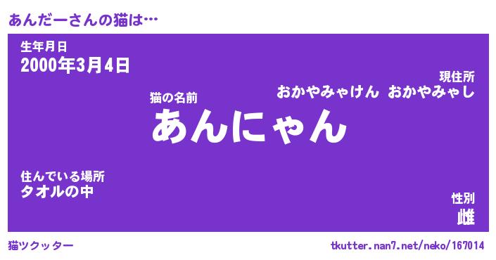 | 生年月日? …「くろねこ」 | 8月01日 10:16 |