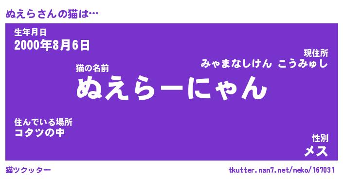 | 生年月日? …「くろねこ」 | 8月01日 10:16 |