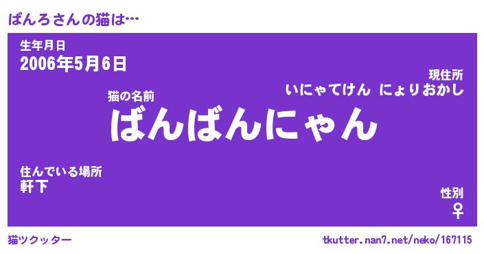 | ポケモン風あだ名 | 『バンチュウ』『バンロダネ』 |