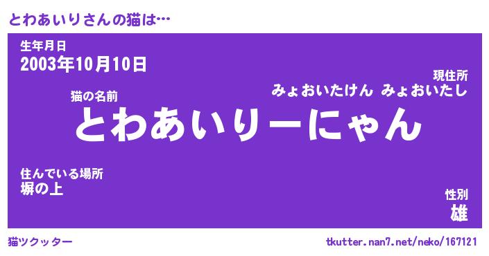 | 生年月日? …「くろねこ」 | 8月01日 10:16 |