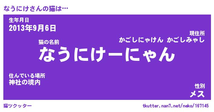 | 意味不明あだ名 | 『ペロリンなうにけ』『永久保存なうにけ』 |