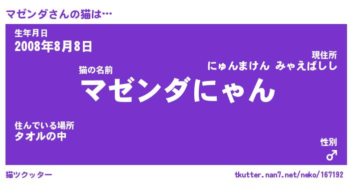 | 意味不明あだ名 | 『ペロリンマゼンダ』『永久保存マゼンダ』 |
