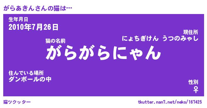 | ヘコむあだ名 | 『がらもー』『酢こんぶ』『がらっ子』 |
