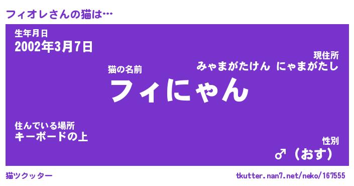 | ポケモン風あだ名 | 『フィチュウ』『フィオダネ』 |