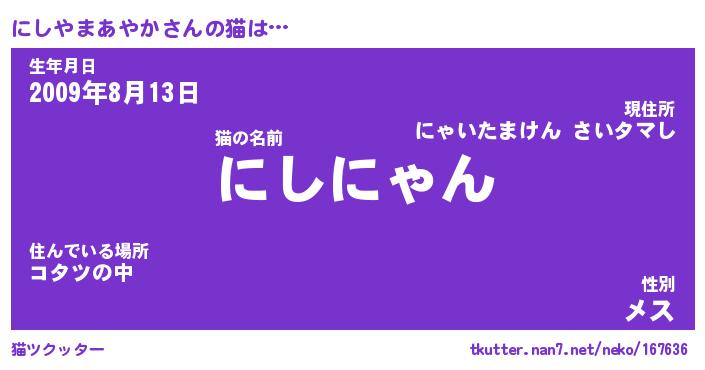 | ポケモン風あだ名 | 『ニシチュウ』『ニシヤダネ』 |