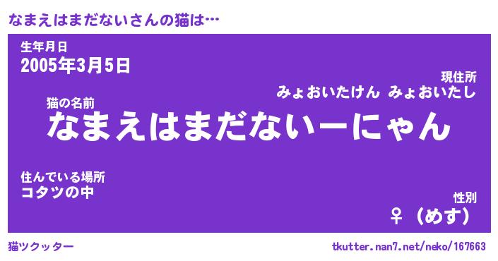 | 生年月日? …「くろねこ」 | 8月01日 10:16 |