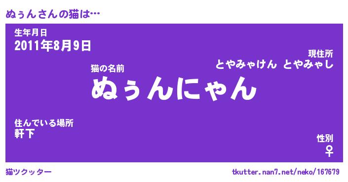 | ポケモン風あだ名 | 『ヌゥチュウ』『ヌゥンダネ』 |