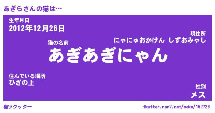 | 2回繰り返すあだ名 | 『あぎあぎ』『ああぎぎ』『ぬらぬら』 |