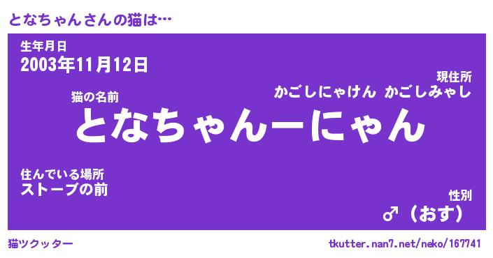 | 生年月日? …「くろねこ」 | 8月01日 10:16 |