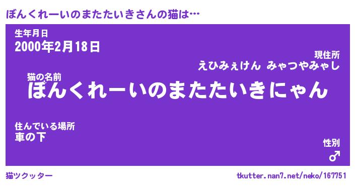 | 生年月日? …「くろねこ」 | 8月01日 10:16 |