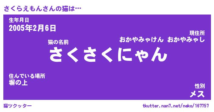 | 生年月日? …「くろねこ」 | 8月01日 10:16 |