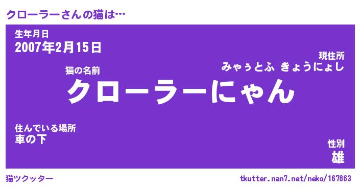 | 生年月日? …「くろねこ」 | 8月01日 10:16 |