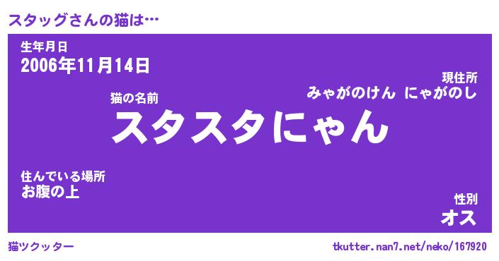 | 意味不明あだ名 | 『ペロリンスタッグ』『永久保存スタッグ』 |