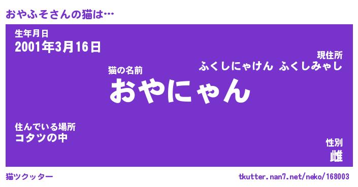 | ツイッター | おやふそさんのツイッターID『tsukushi_nyan』 |