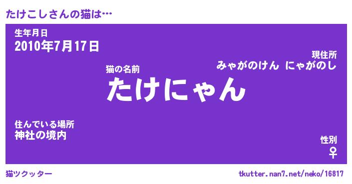 | ポケモン風あだ名 | 『タケチュウ』『タケコダネ』 |