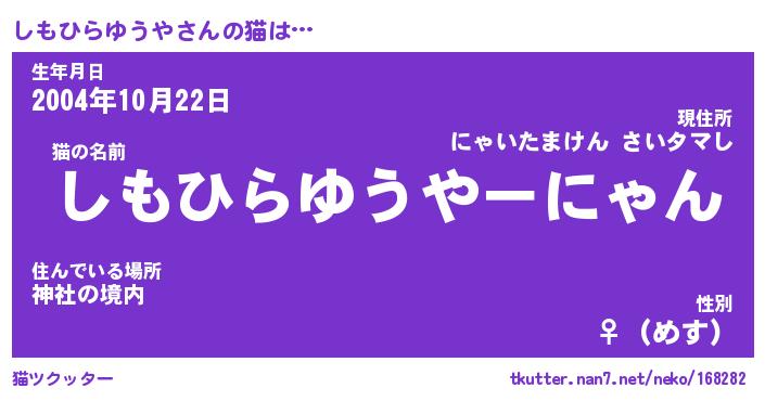 | ヘコむあだ名 | 『しもにー』『つくし』『しもぷりん』 |