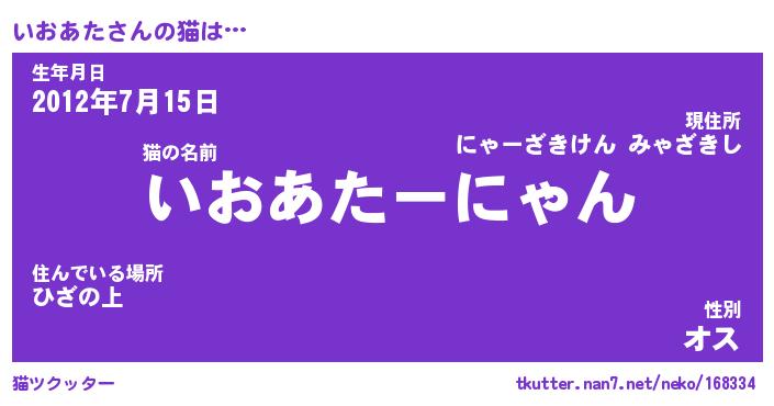 | 意味不明あだ名 | 『ペロリンいおあた』『永久保存いおあた』 |