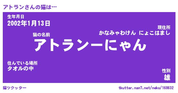 | 意味不明あだ名 | 『ペロリンアトラン』『永久保存アトラン』 |