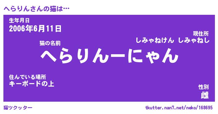 | 生年月日? …「くろねこ」 | 8月01日 10:16 |