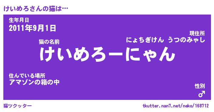 | 意味不明あだ名 | 『ペロリンけいめろ』『永久保存けいめろ』 |
