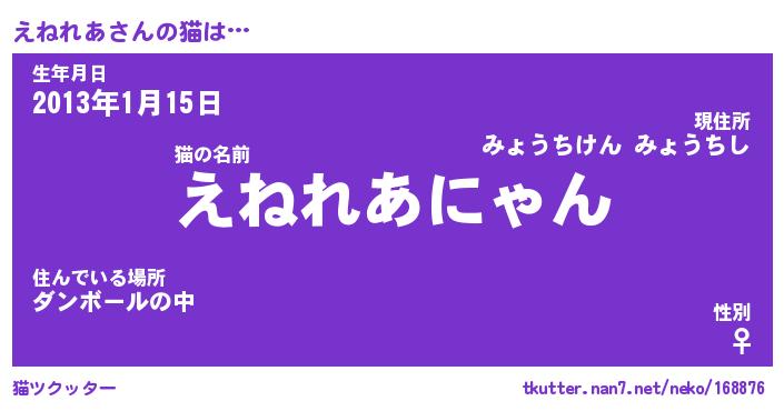 | 意味不明あだ名 | 『ペロリンえねれあ』『永久保存えねれあ』 |