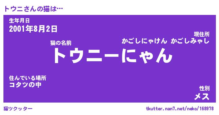 | 意味不明あだ名 | 『ペロリントウニ』『トウニフォーエバー』 |