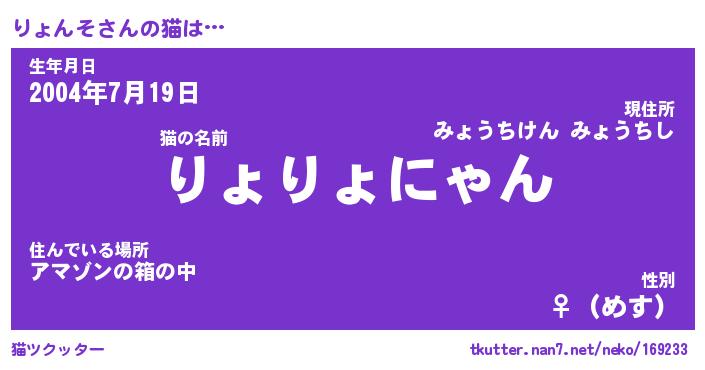 | 生年月日? …「くろねこ」 | 8月01日 10:16 |