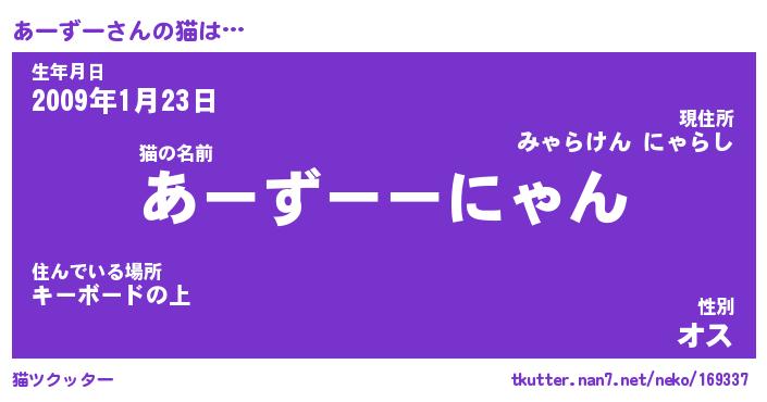 | 意味不明あだ名 | 『ペロリンあーずー』『永久保存あーずー』 |