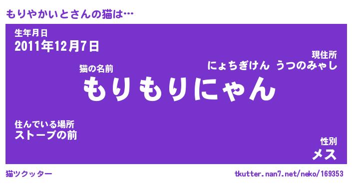 | ヘコむあだ名 | 『もりにゅー』『酢こんぶ』『もりを』 |