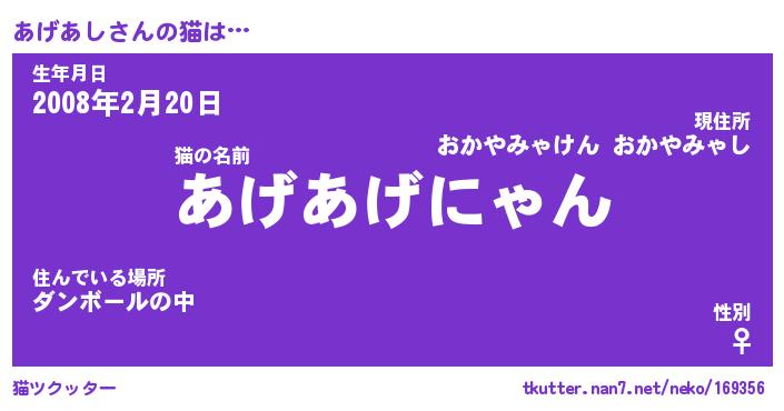 | 意味不明あだ名 | 『ペロリンあげあし』『永久保存あげあし』 |