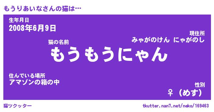 | ヘコむあだ名 | 『もうにー』『つくし』『もうを』 |