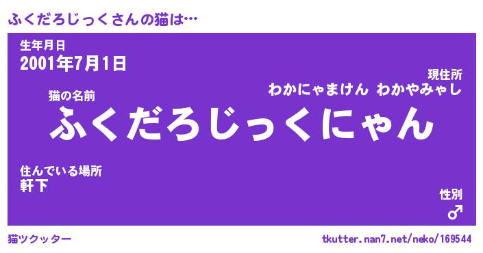 | 男性向けラノベタイトル風あだ名 | 『ふくだろじっくの憂鬱』 |