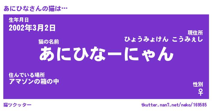 | ポケモン風あだ名 | 『アニチュウ』『アニヒダネ』 |