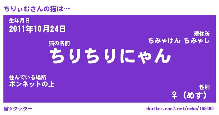 | ファンタジー風あだ名 | 『チリフェル』『エターナルチリィムー』 |