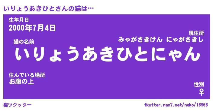 | ツイッター | いりょうあきひとさんのツイッターID『kikurage_kun』 |