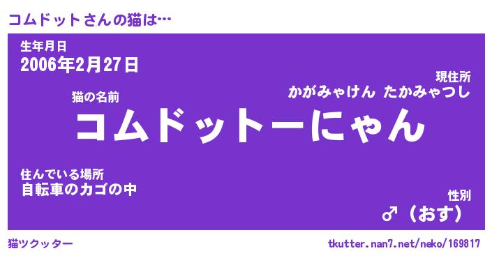| ファンタジー風あだ名 | 『コムフェル』『エターナルコムドットー』 |