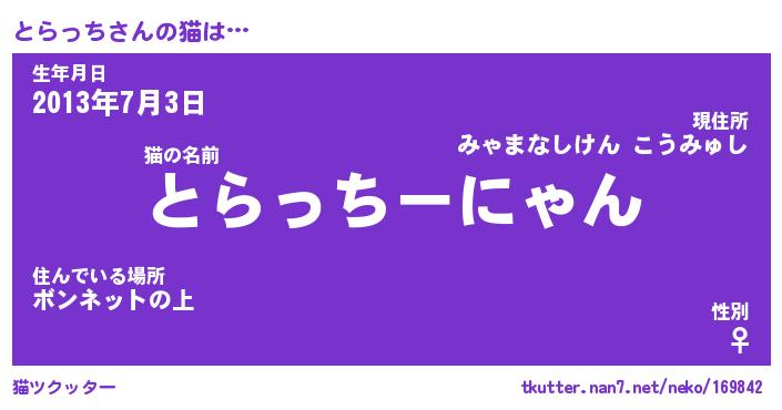 | 意味不明あだ名 | 『ペロリンとらっち』『永久保存とらっち』 |